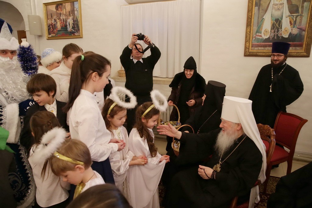Перед началом представления хор Воскресной школы Новодевичьего монастыря исполнил тропарь и кондак Рождества Христова, после чего митрополит Крутицкий и Коломенский Ювеналий приветствовал юных зрителей: