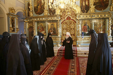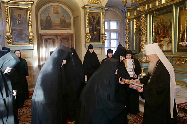 По окончании праздника в Успенском храме Его Высокопреосвященство поздравил настоятельницу монастыря игумению Маргариту (Феоктистову) и сестер обители с праздником Рождества Христова.