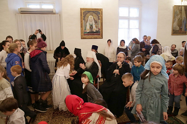 Детям и всем гостям праздника был представлен спектакль, подготовленный учениками Воскресной школы обители. В завершение праздника каждый получил от владыки митрополита рождественский подарок.