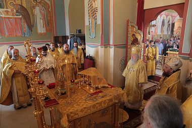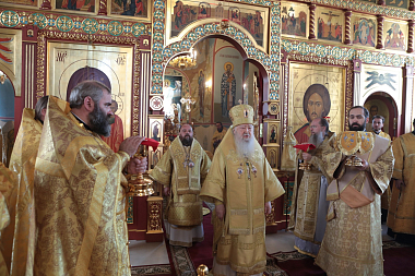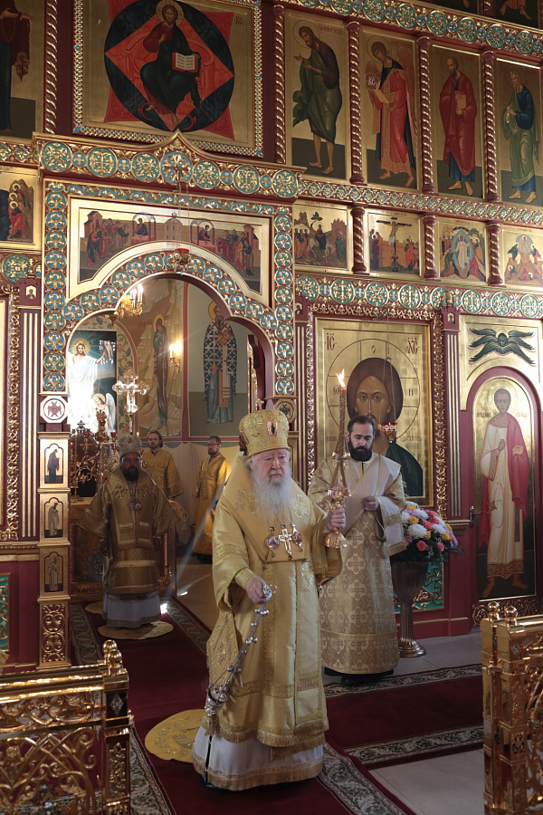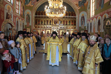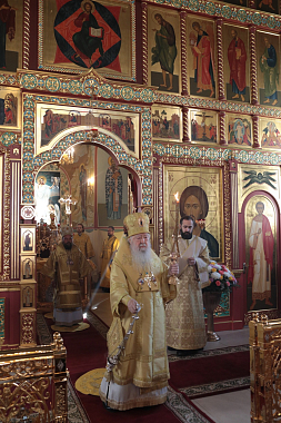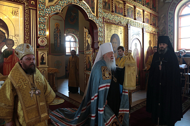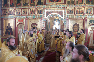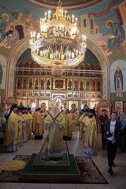 Его Высокопреосвященству сослужили епископ Северобайкальский и Сосново-Озерский Николай, благочинный монастырей Московской областной епархии игумен Евмений (Лагутин), настоятель Николо-Пешношского монастыря игумен Алексий (Горлычев), благочинные церковных округов Московской областной епархии: Дмитровского – протоиерей Афанасий Чорногуз, Яхромского – священник Сергий Бернацкий, Рогачевского – священник Сергий Сафронов, настоятели Покровско-Васильевского мужского монастыря г. Павловского Посада игумен Андрей (Тонков), Борисоглебского мужского монастыря г. Дмитрова игумен Августин (Шорников), Лужецкого Ферапонтова мужского монастыря г. Можайска игумен Авель (Пивоваров), Богоявленского Старо-Голутвина мужского монастыря г. Коломны игумен Варлаам (Горбунов), клирики Николо-Пеношской обители.