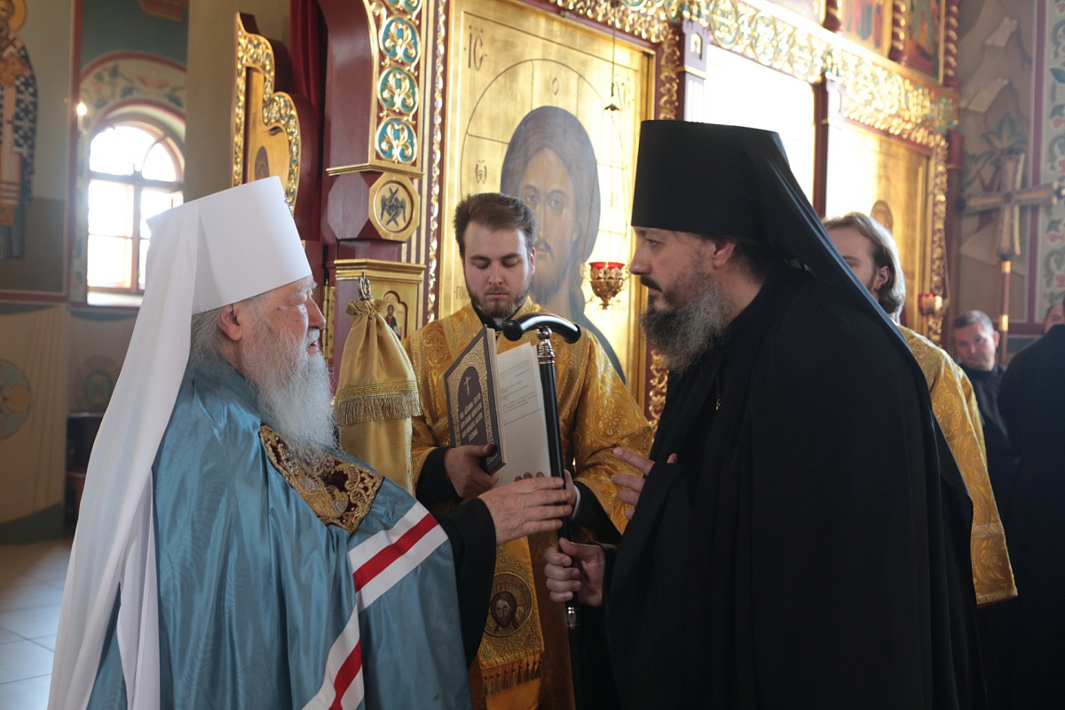 Я очень надеюсь, что ты, возлюбленный брат, начнешь полное духовное возрождение этой обители и, видя твои подвиги, и многие, я уверен, пророчески об этом говорю, устремятся в это святое место, чтобы служить Богу и людям в монашеском звании. С этой уверенностью я возглашаю полагающиеся при этом слова: "Прими сей жезл, имже утверждей паству свою, да правиши, яко и слово имаши отдати за ню нашему Богу во дни суда". Помогай тебе Господь, Матерь Божия и святые угодники Божии, основатели этой обители, и новомученики, которые кровью своей запечатлели верность Христу, и сейчас являются молитвенными предстателями за всех нас».
