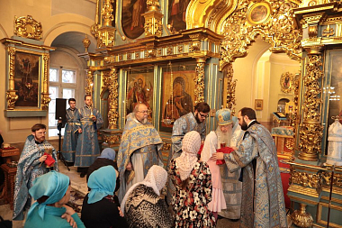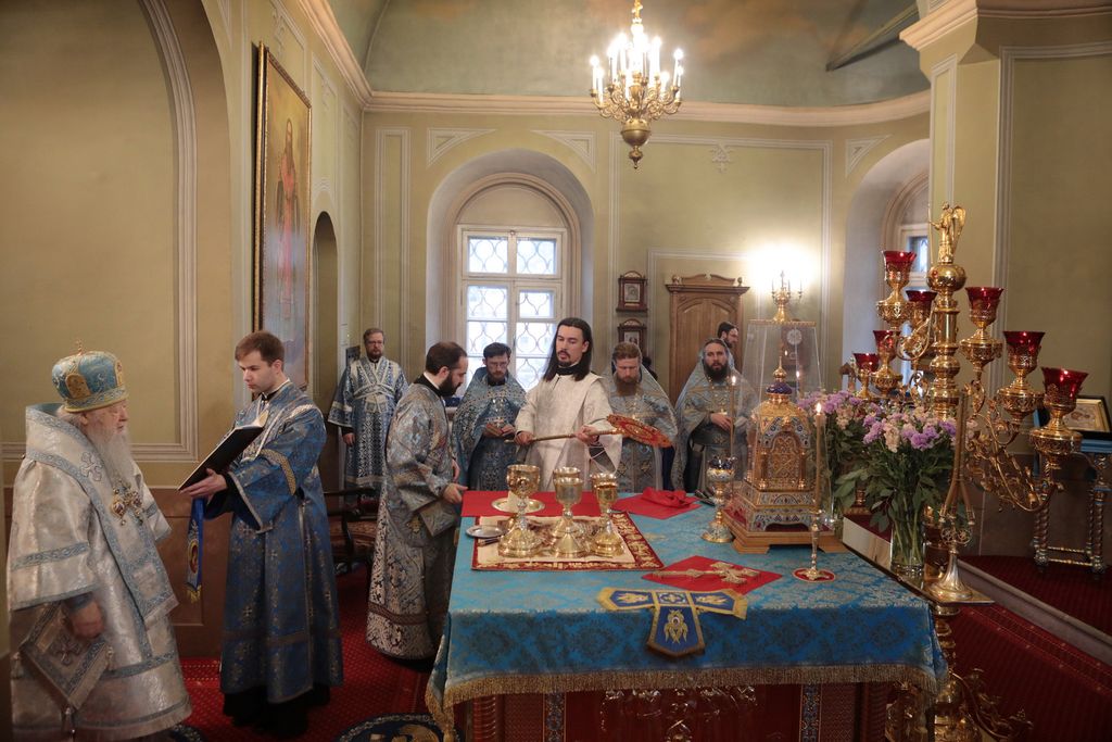 За Литургией были вознесены молитвы о упокоении митрополита Ленинградского и Ладожского Питирима (Свиридова) и новопреставленного протоиерея Иоанна Белевцева, профессора Санкт-Петербургской духовной академии.