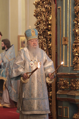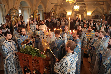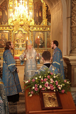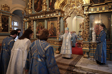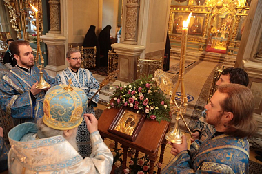 Накануне вечером владыка Ювеналий возглавил всенощное бдение с чтением акафиста Божией Матери перед Ее иконой «Казанская».