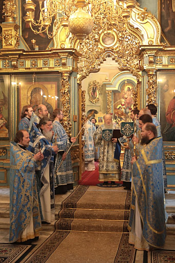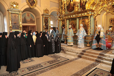 Его Высокопреосвященству сослужили епископы Видновский Тихон, Серпуховской Роман, Зарайский Константин и Луховицкий Петр, пресс-секретарь Синодального отдела по монастырям и монашеству и настоятель Московского подворья Оптиной пустыни архимандрит Мелхиседек (Артюхин), секретарь Московского епархиального управления протоиерей Михаил Егоров, благочинные церковных округов Московской епархии и клирики обители.