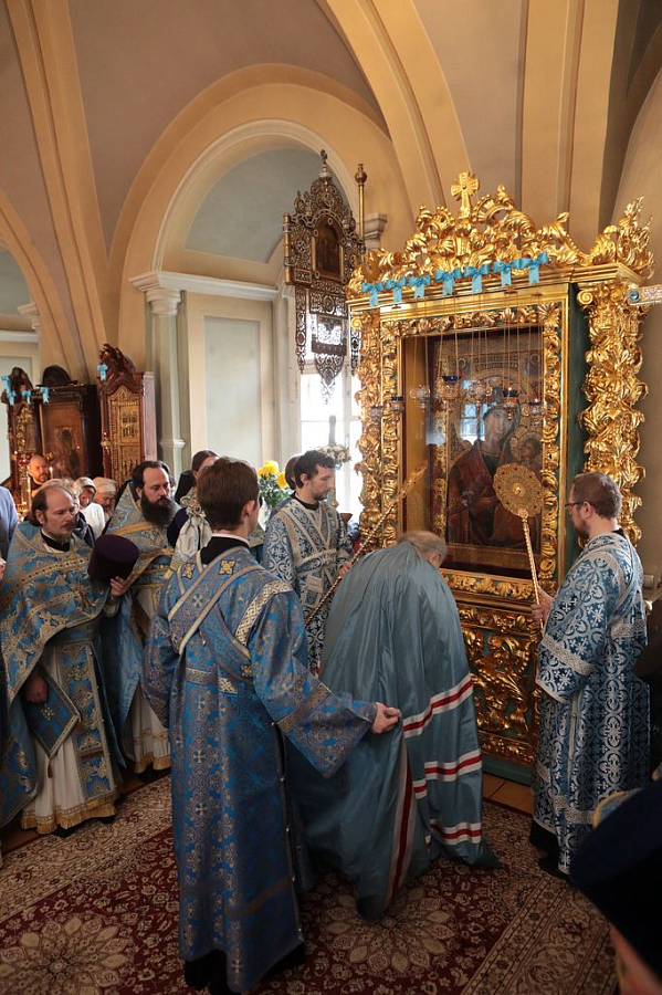 По окончании Божественной литургии были совершены благодарственный молебен ко Господу Иисусу Христу и славление Божией Матери перед Ее иконой «Иверская».