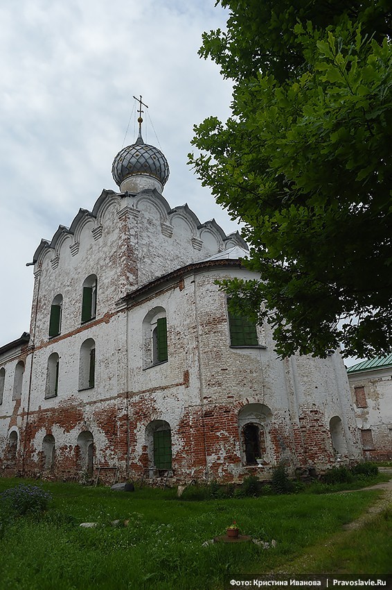 Собор в аварийном состоянии: полы отсутствуют, по стенам с фресками идут безобразные трещины, арки входов и потолки трапезной части подперты досками, чтобы штукатурка не обвалилась на головы посетителей. Монастырь в 200 метрах от Ростовского кремля. Это такое же уникальное наследие, федеральный памятник, и он погибает на наших глазах. В соборе необходимо предпринять хотя бы реанимационные работы.