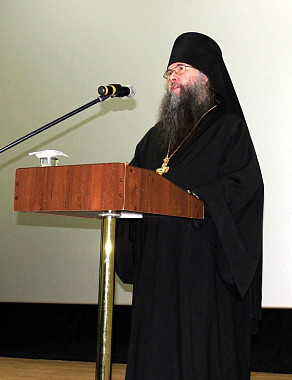 Епископ Усманский Евфимий, викарий Липецкой митрополии, обратился к собравшимся со словом приветствия и сообщением «Монашеский путь: вехи и рубежи», посвященным рассмотрению некоторых трудностей, возникающих перед монашествующими на пути их духовного становления и способам их преодоления.