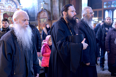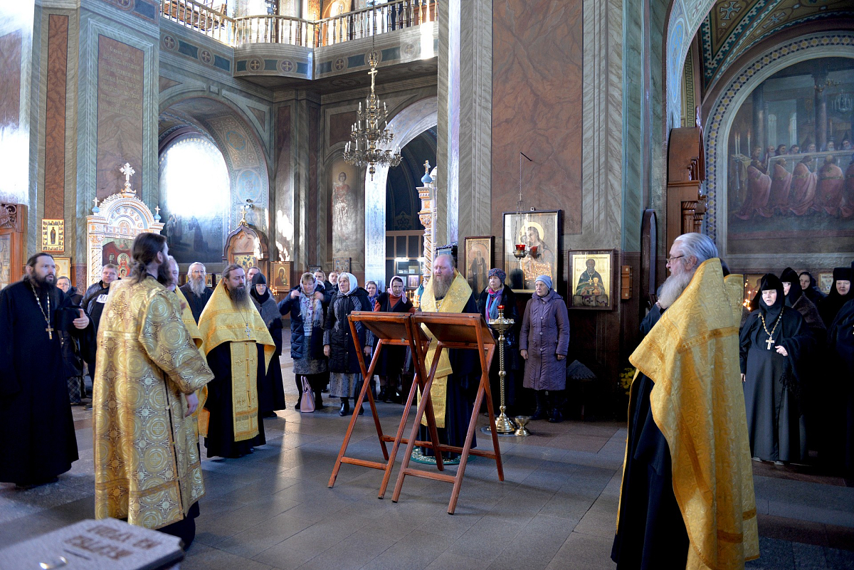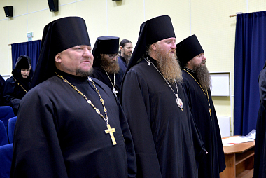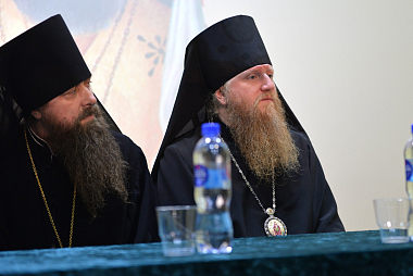 Собрание началось молебном у мощей святителя Тихона Задонского во Владимирском соборе Рождество-Богородицкого мужского монастыря, который совершил епископ Усманский Евфимий, викарий Липецкой митрополии, в сослужении духовенства монастыря. В храме молились участники собрания – настоятели и насельники обителей Липецкой епархии.