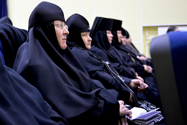 монахиня Никона (Афанасьева), насельница Свято-Тихоновского Преображенского женского монастыря, зачитала доклад «Роль монашества в современном мире и современные технологии в жизни монашествующих».