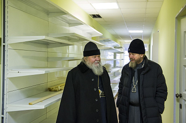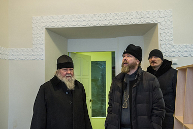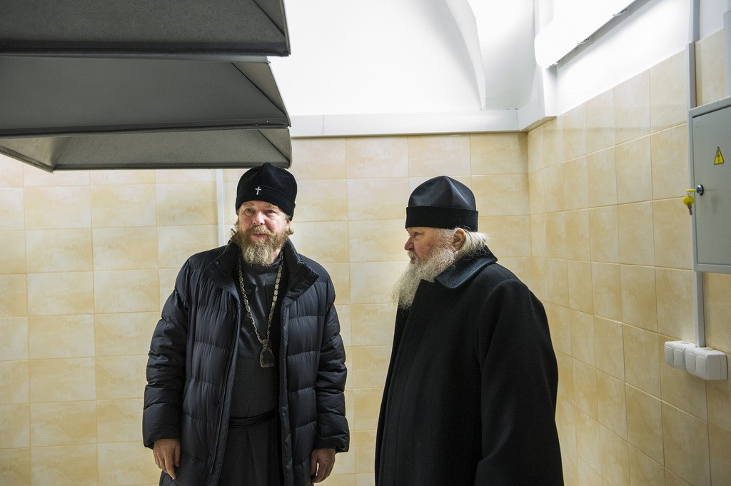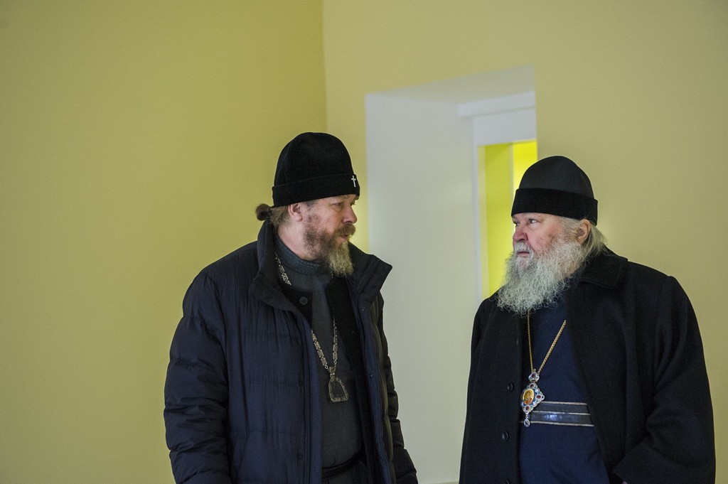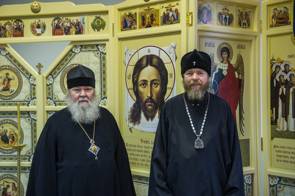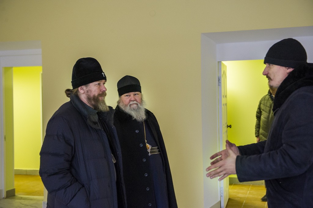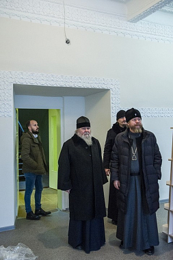 Перед началом заседания архипастыри ознакомились с ходом реставрационно-ремонтных работ, ведущихся на подворье, а также посетили домовую часовню в честь Собора Псково-Печерских преподобных.