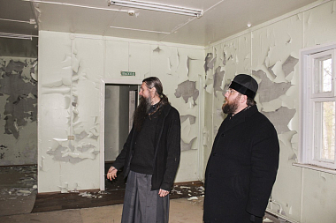 Правящий архиерей Вологодской епархии посетил и в сопровождении иеромонаха Александа (Кораблева) осмотрел все строения, расположенные на территории архиерейского подворья, переданные в 2017 году в собственность Вологодской епархии.