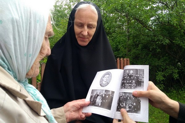 Пройдя под обнажившимися от советской штукатурки сводами храма, сестры вместе с отцом Иаковом отправились на улицу, где, предположительно, жил священномученик Владимир. По указанию уроженки с. Лежнева 94-летней Н.М. Гуниной сестры увидели дом, где протекала жизнь отца Владимира.