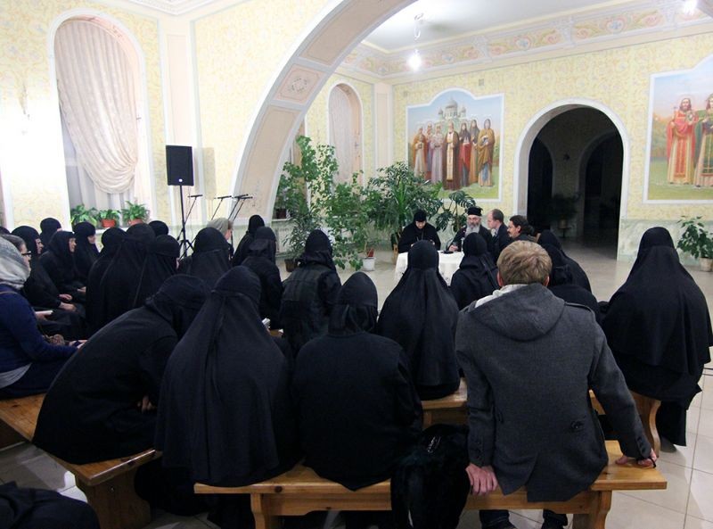 В этот день в Варваринской трапезной монастыря афонский старец Антипа провел беседу о монашестве и ответил на вопросы сестер.