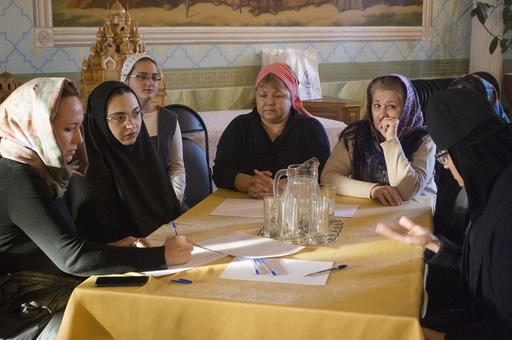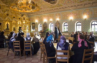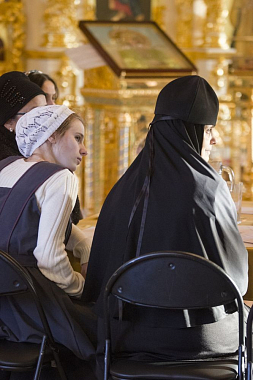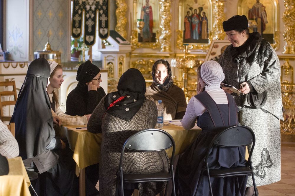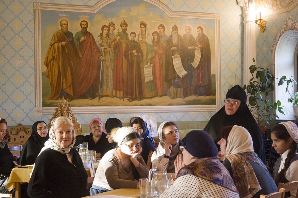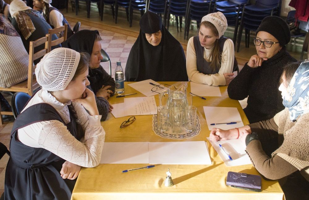 После обеда состоялся исторический семинар «Духовные перспективы народа-победителя», приуроченный к 75-летию Великой Победы. В семинаре приняли участие насельницы монастыря, учителя, сотрудники и старшеклассницы «Доброй школы на Сольбе». Семинар проводился в формате стратегической сессии и вызвал неподдельный интерес участников.