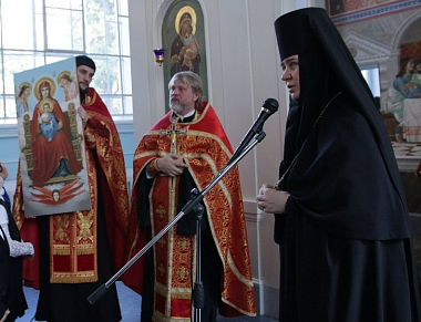 После праздничной Божественной литургии, совершенной во храме Свято-Владимирской школы Введения во храм Пресвятой Богородицы, игумения София обратилась к богомольцам: