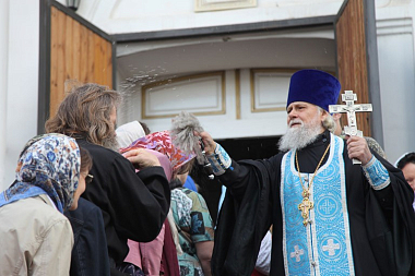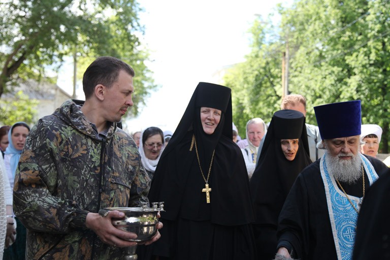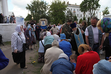 Перед началом крестного хода в Казанском женском монастыре, где хранится святой образ, был совершен молебен. После коленопреклоненной молитвы икона в сопровождении священнослужителей Ярославской и Рыбинской епархий Ярославской митрополии, сестер Казанской обители и верующих отправилась в путь.