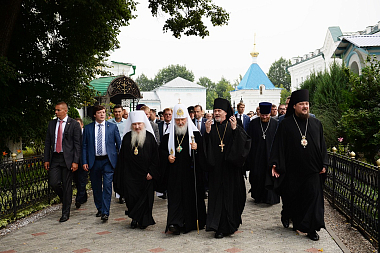 В завершение визита Святейший Патриарх Кирилл осмотрел Троицкий собор, святой источник и детский приют при обители.