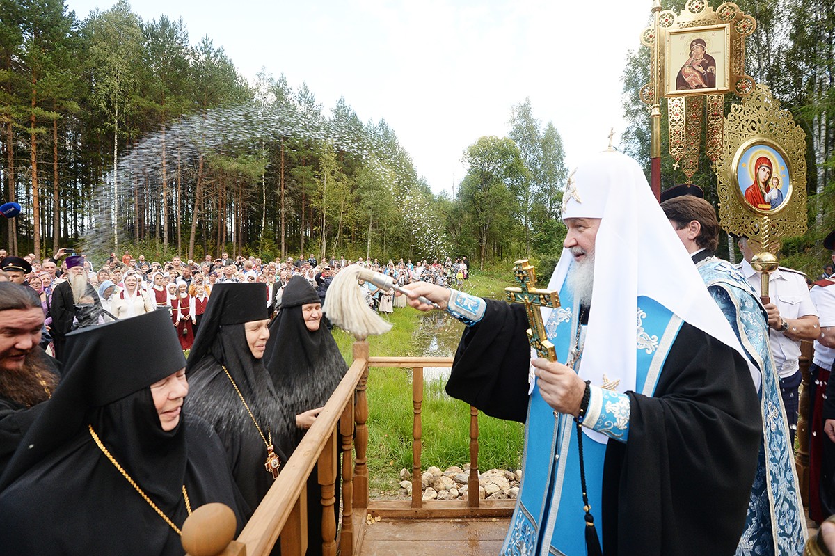 Святейший Патриарх Кирилл совершил чин малого освящения деревянного храма в честь Святого равноапостольного великого князя Владимира.