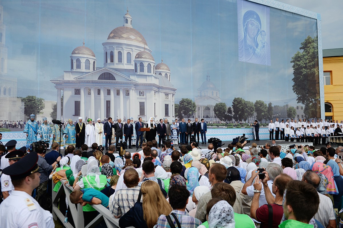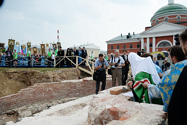 В крестном ходе и закладке собора участвовали духовенство, представители государственных и муниципальных органов власти Татарстана, православная молодежь.