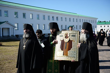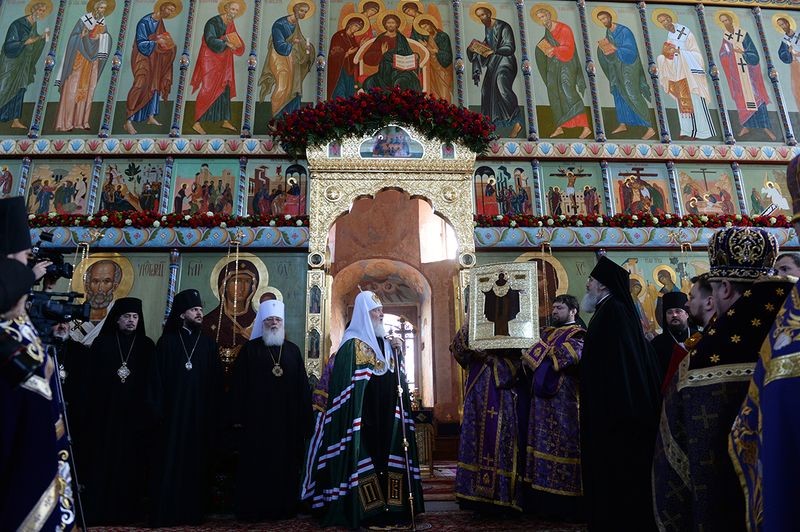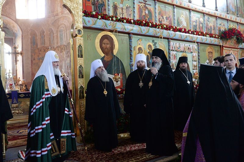 Святейший Патриарх Кирилл поблагодарил епископа Мстислава, игумена Антония с братией и всех, кто потрудился для восстановления обители. В дар монастырю Святейший Владыка передал старинную икону преподобного Александра Свирского, написанную по заказу святителя Макария, митрополита Московского, в XVI веке. Образ был выкуплен у зарубежных коллекционеров благотворителем обители В.Н. Жимировым.