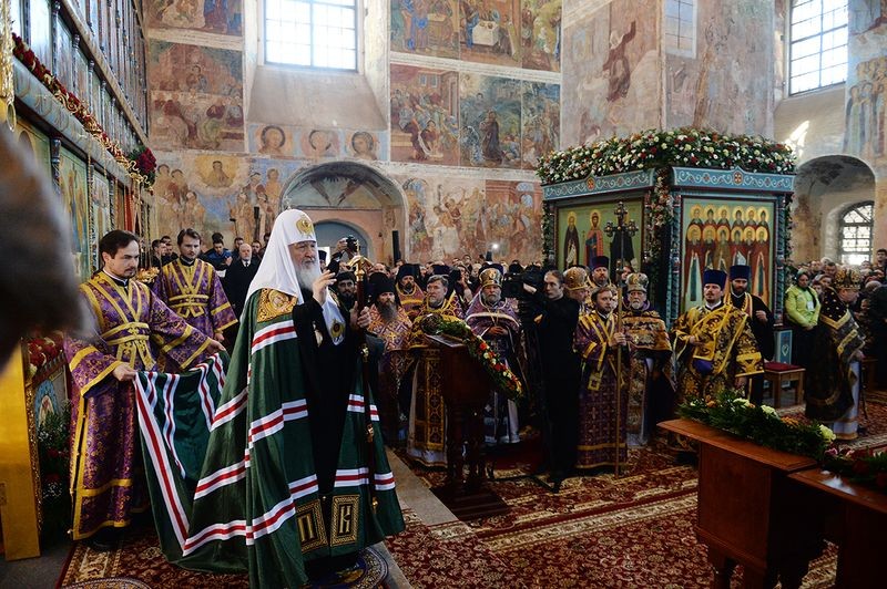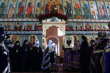 После сугубой ектении Святейший Патриарх Кирилл вознес молитву о мире на Украине.
