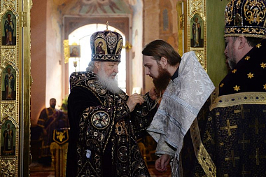 За Литургией Святейший Патриарх Кирилл рукоположил иеродиакона Лавра (Архипова), насельника Сретенского ставропигиального мужского монастыря г. Москвы, в сан иеромонаха.