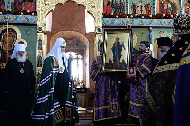 По завершении Литургии Предстоятель Русской Церкви совершил славление и прочитал молитву преподобному Александру Свирскому.