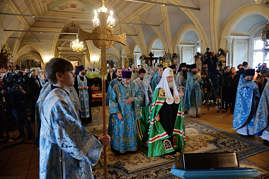 За богослужением Его Святейшеству сослужили: митрополит Крутицкий и Коломенский Ювеналий, Патриарший наместник Московской областной епархии; архиепископ Солнечногорский Сергий, руководитель Административного секретариата Московской Патриархии; архиепископ Венский и Будапештский Антоний, руководитель Управления Московской Патриархии по зарубежным учреждениям; епископ Видновский Тихон; епископ Серпуховской Роман; епископ Зарайский Константин; епископ Луховицкий Петр; протопресвитер Владимир Диваков, секретарь Патриарха Московского и всея Руси по городу Москве; протоиерей Михаил Егоров, секретарь Московского епархиального управления; протоиерей Андрей Марущак, клирик кафедрального соборного Храма Христа Спасителя г. Москвы; духовенство Москвы и Московской области.