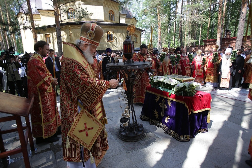 Его Святейшеству сослужили: митрополит Киевский и всея Украины Онуфрий; митрополит Крутицкий и Коломенский Ювеналий; митрополит Кишиневский и всея Молдовы Владимир; митрополит Астанайский и Казахстанский Александр, глава Митрополичьего округа в Республике Казахстан; митрополит Ташкентский и Узбекистанский Викентий, глава Среднеазиатского митрополичьего округа; митрополит Санкт-Петербургский и Ладожский Варсонофий, управляющий делами Московской Патриархии; митрополит Минский и Заславский Павел, Патриарший экзарх всея Беларуси; митрополит Волоколамский Иларион, председатель Отдела внешних церковных связей; митрополит Екатеринбургский и Верхотурский Кирилл; архиепископ Солнечногорский Сергий, руководитель Административного секретариата Московской Патриархии; епископ Каменский и Алапаевский Мефодий; епископ Нижнетагильский и Невьянский Евгений; епископ Серовский и Краснотурьинский Алексий; иеромонах Кирилл (Корытко), секретарь епархиального управления Екатеринбургской епархии; игумен Моисей (Пилатс), настоятель мужского монастыря Новомучеников и исповедников Церкви Русской; насельники монастыря Новомучеников и исповедников Церкви Русской в священном сане, духовенство Екатеринбургской митрополии.