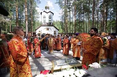 По окончании богослужения состоялось шествие с мощами преподобномученицы Великой княгини Елисаветы к бывшей Нижне-Селимской шахте, куда в ночь на 18 июля 1918 года были сброшены живыми Великая княгиня Елисавета Феодоровна Романова, инокиня Варвара (Яковлева) и князья династии Романовых. Ковчег с мощами был установлен у шахты.