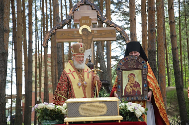 Предстоятель Русской Православной Церкви посетил мужской монастырь Новомучеников и исповедников Церкви Русской Каменской епархии, построенный рядом с Нижне-Селимской шахтой, куда в ночь на 18 июля 1918 года были сброшены живыми Великая княгиня Елисавета Феодоровна Романова, инокиня Варвара (Яковлева), Великий князь Сергей Михайлович, князья императорской крови Иоанн, Константин и Игорь Константиновичи, князь Владимир Палей и Федор Ремез.
