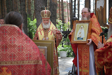 Предстоятель Русской Православной Церкви совершил славление и прочитал молитву преподобномученицам Елисавете и Варваре.