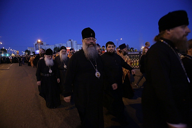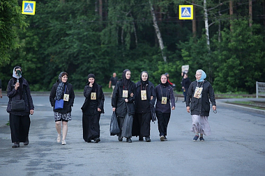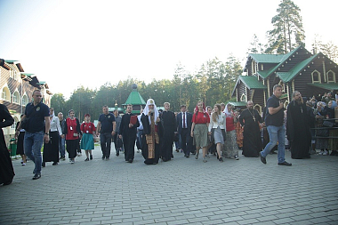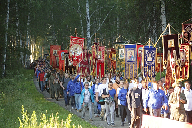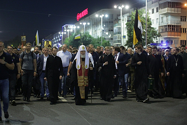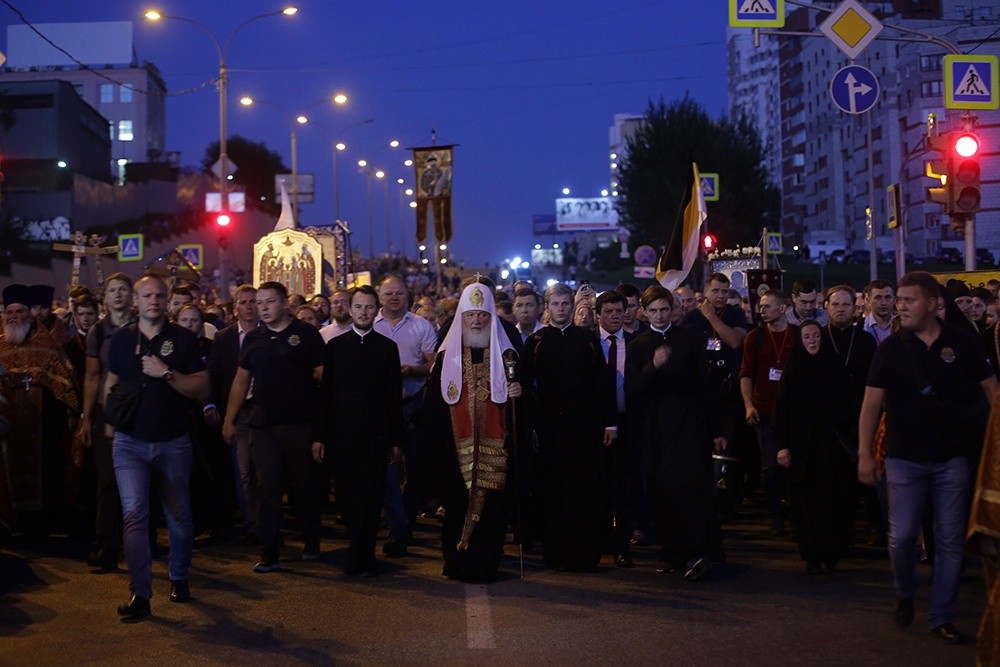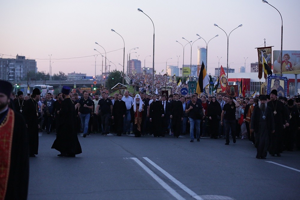 Святейший Патриарх Кирилл прошел весь маршрут крестного хода. Утром 17 июля крестный ход во главе с Предстоятелем Русской Православной Церкви прибыл к монастырю святых Царственных страстотерпцев на Ганиной Яме. В обители перед поклонным крестом у шахты № 7 Святейший Владыка совершил молебен святым Царственным страстотерпцам.