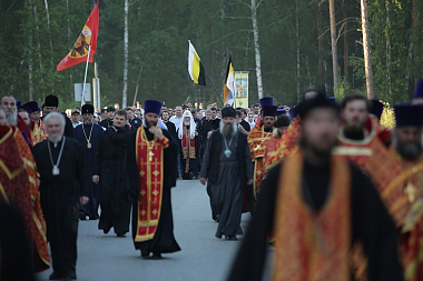 Крестный ход на Ганину Яму и молебен в монастыре святых Царственных страстотерпцев стали последними мероприятиями в программе Первосвятительского визита Святейшего Патриарха Кирилла в Екатеринбургскую митрополию, приуроченного к 100-летию расстрела царской семьи.