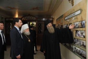 Гостей встречали митрополит Ярославский и Ростовский Пантелеимон и настоятель монастыря игумен Никодим (Федоров).
