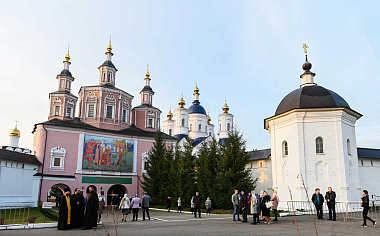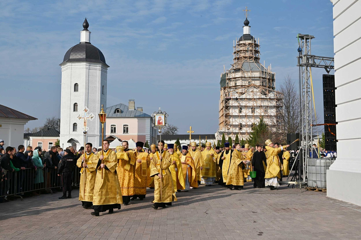 У врат Успенского собора Свенской обители Святейшего Владыку встречали митрополит Брянский и Севский Александр, губернатор Брянской области А.В. Богомаз, архиереи и духовенство Русской Православной Церкви.
