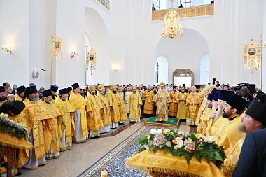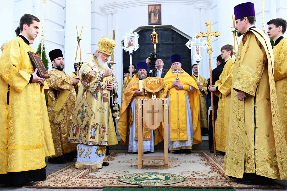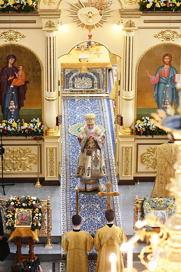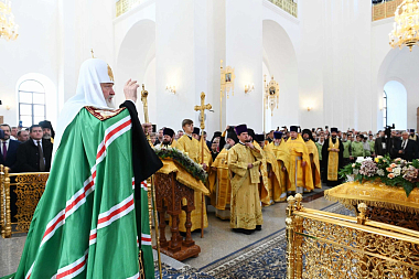 Предстоятель Русской Церкви совершил чин великого освящения Успенского собора и Божественную литургию в новоосвященном храме.