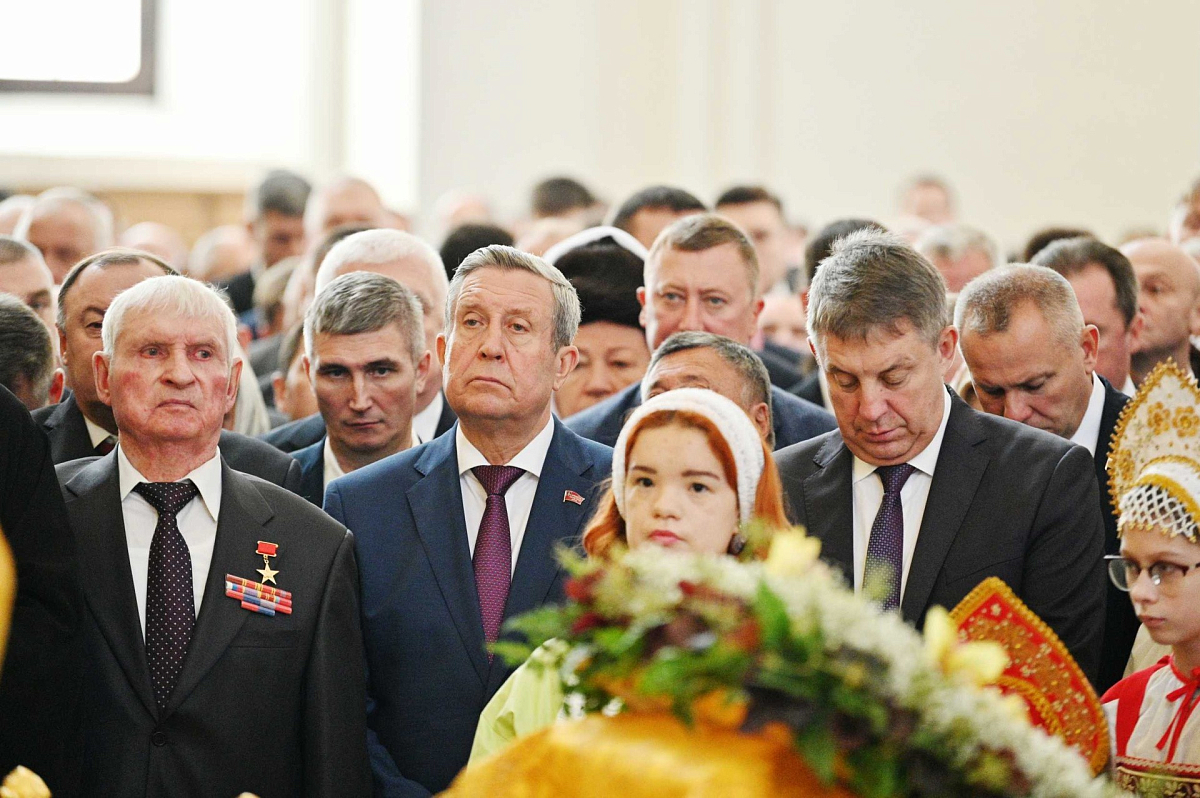 За богослужением присутствовали: губернатор Брянской области А.В. Богомаз; председатель Брянской областной Думы В.И. Попков; главный федеральный инспектор по Брянской области аппарата полномочного представителя Президента РФ в Центральном федеральном округе А.С. Дьячук; представители Брянской областной Думы в Совете Федерации ФС РФ С.В. Калашников и Г.Н. Солодун; депутаты Государственной Думы ФС РФ В.В. Суббот и В.М. Миронова; глава администрации г. Брянска А.Н. Макаров; глава г. Брянска М.В. Дбар; Герой Социалистического труда, Почетный гражданин Брянской области Георгий Лобус; главы районов Брянской области, депутаты Брянской областной Думы, руководители силовых структур, благотворители и строители Успенского собора, многочисленные жители Брянска и паломники.