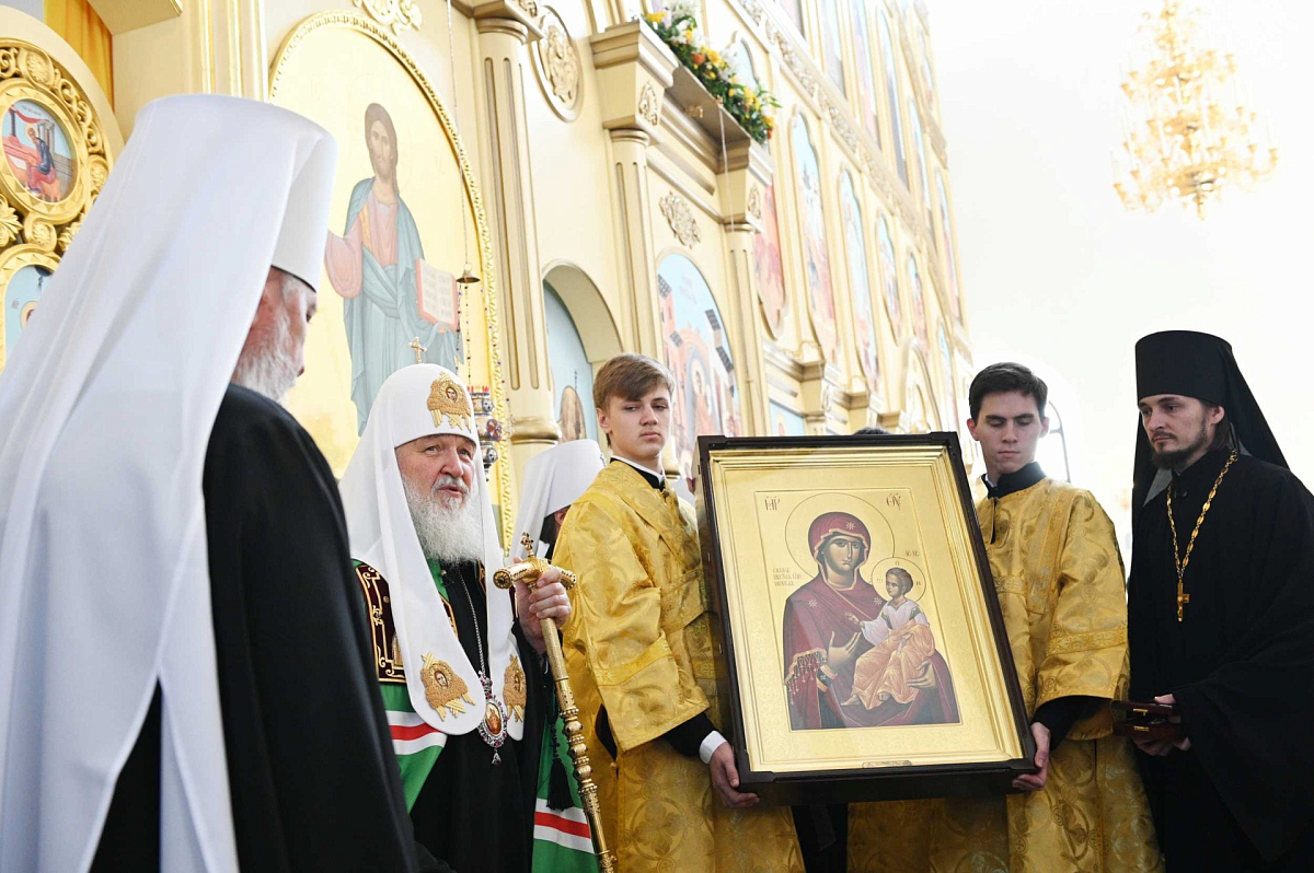 В дар новоосвященному собору Святейший Патриарх Кирилл передал список Иверской иконы Божией Матери. Для новых храмов Брянской митрополии Святейший Владыка передал 30 напрестольных Евангелий, всем насельникам монастыря – художественно оформленные молитвословы.