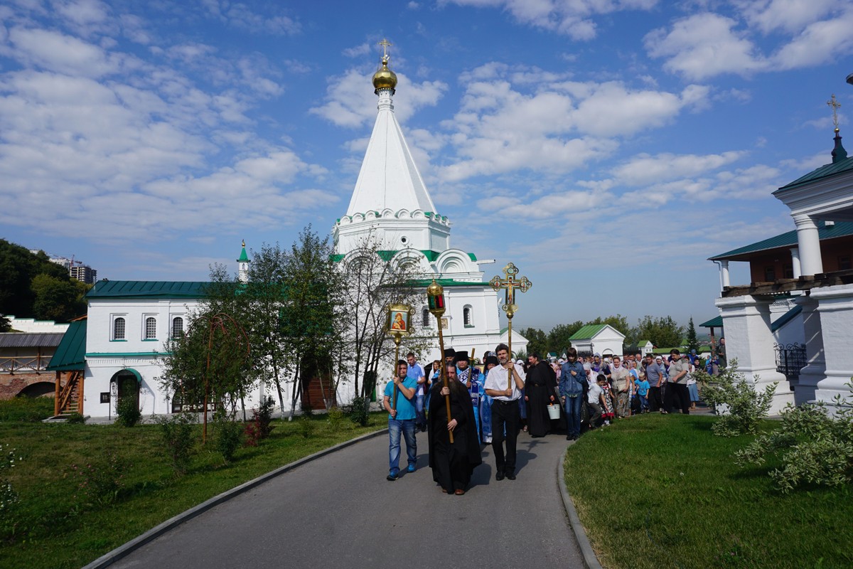 28 августа 2018 года, в престольный праздник Вознесенского Печерского мужского монастыря Нижнего Новгорода, в Успенском храме игумен обители архимандрит Тихон (Затёкин) в сослужении игумена Вассиана (Бирагова), игумена Евфимия (Красногорова), иеромонаха Филарета (Рыжкова), иеромонаха Серафима (Сокольщика), иеродиакона Евстафия (Полякова) и иеродиакона Антония (Затёкина) совершили Божественную литургию, после которой состоялся крестный ход при большом стечении богомольцев.