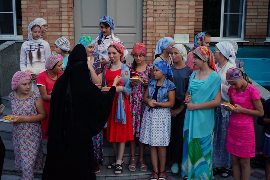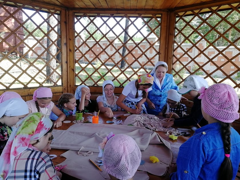 20 юных паломниц приехали в обитель, где их ожидала насыщенная программа. Утреннее и вечернее детское молитвенное правило, посещение богослужений, исповедь и Причастие в праздник Крещения Руси, чтение житий святых, ежевечерний просмотр православного мульткалендаря.