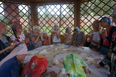 Участие в трудовых послушаниях тоже было в радость, ведь это – посильная помощь сестрам по уходу за цветниками, в трапезной, на огороде, в сборе лекарственных растений. Работа в творческих мастерских позволила девочкам научиться различным видам рукоделия и привезти домой изготовленные своими руками изделия: мягкую игрушку (в этом году – куклу); необычные брелоки и банты для волос из фетра, лент и пряжи; неповторимые кусочки ароматного лечебного мыла; поделки из бумаги; косынки, расписанные своими руками в технике батик. Немало времени было посвящено рисованию, пению, выжиганию по дереву, флористике. Состоялись кулинарные мастер-классы, в том числе по росписи имбирных пряников.