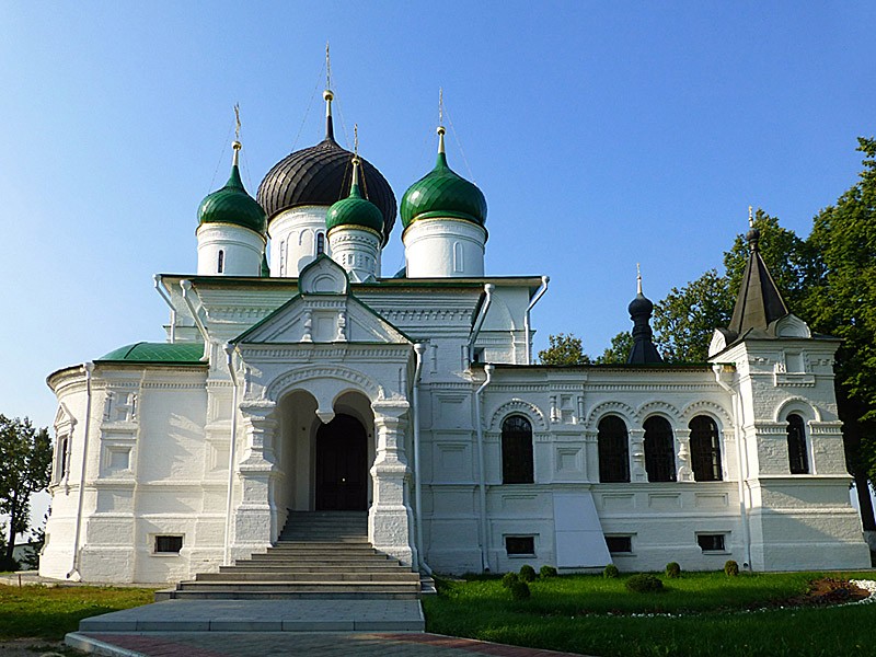 Жители и гости г. Переславля-Залесского хорошо знают Феодоровский женский монастырь. Находится он на выезде из города в сторону Москвы. Главный храм монастыря – Феодоровский – имеет интересную историю. В 1557 году в Переславле на освящении одного из храмов присутствовал царь Иван Грозный. Его сопровождала жена царица Анастасия, которая ждала ребенка. Сын у царицы родился в семи верстах от Переславля-Залесского. На этом месте была установлена часовня-крест. Но этим царь не ограничился. В благодарность за рождение сына он повелел заменить в Феодоровском монастыре обветшавшую деревянную церковь и возвести на ее месте пятиглавый каменный собор. Сегодня это самое древнее монастырское здание.
