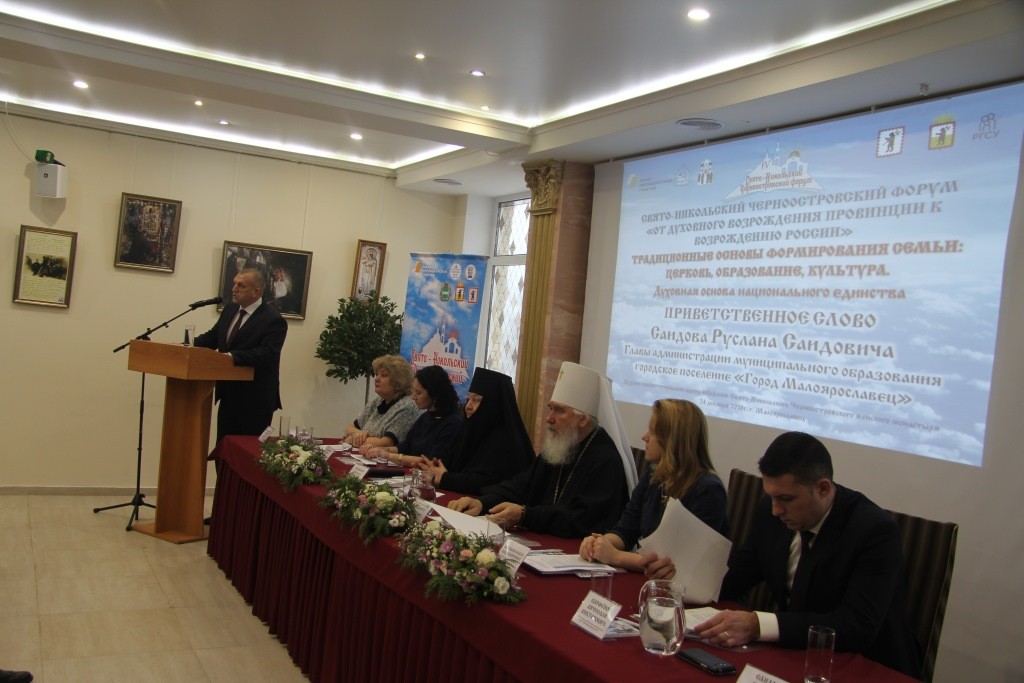 В выступлении временного исполняющего обязанности главы Администрации Малоярославецкого района В.В. Парфенова и главы Администрации города Малоярослаца Р.С. Саидова прозвучали поздравления с наступающими праздниками, слова о важности сотрудничества города и района со Свято-Никольским Черноостровским женским монастырем и Калужской митрополией, а также пожелания плодотворной работы форуму.