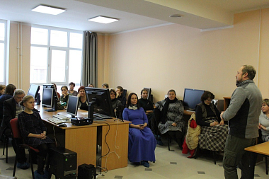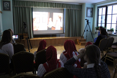 В аудитории Центра православных медиа РГСУ, а затем в актовом зале Православной гимназии при Свято-Никольском Черноостровском женском монастыре проходил мастер-класс по интерактивной педагогике проекта «Мы сами снимаем кино».