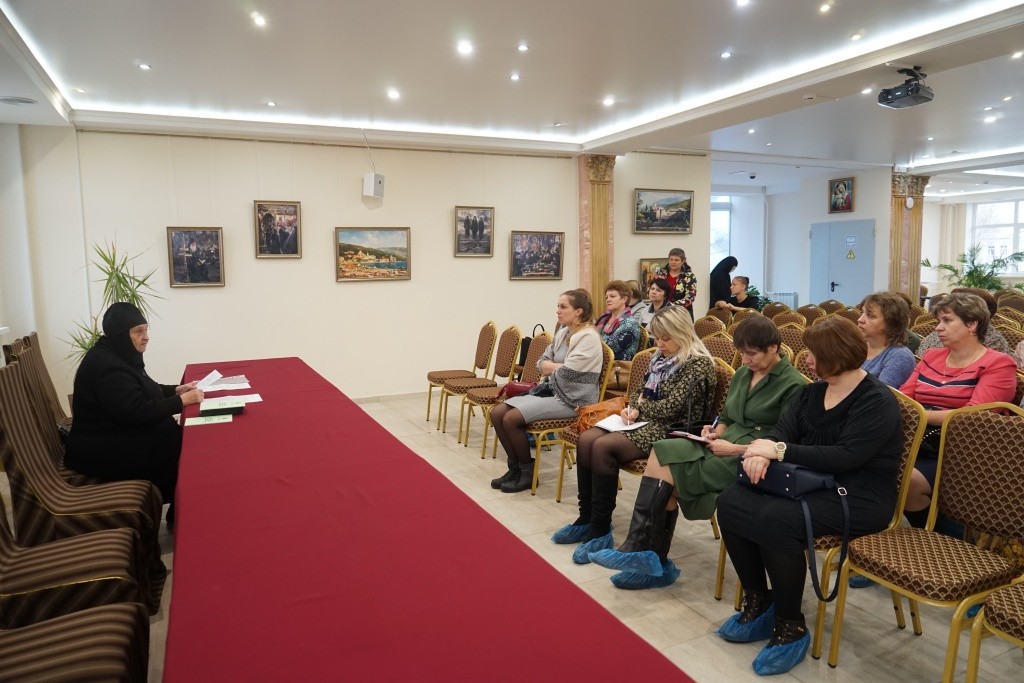 10 октября 2019 в Духовно-просветительском центре «София» при Свято-Никольском Черноостровском женском монастыре прошел семинар для педагогов детских садов г. Малоярославца и Малоярославецкого района «Медиаобразование в детском саду». Ведущей семинара выступила президент Международного православного Сретенского кинофестиваля «Встреча» монахиня София (Ищенко).