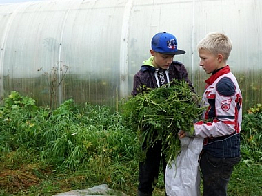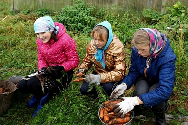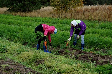 «На поле убирали морковь. Учителя и девочки обрезали ботву и складывали плоды в ведра, а потом пересыпали в мешки. А мальчики собирали ботву и увозили ее на тележках в коровник», – рассказала пресс-секретарь Пинежского благочиния Людмила Соснина.
