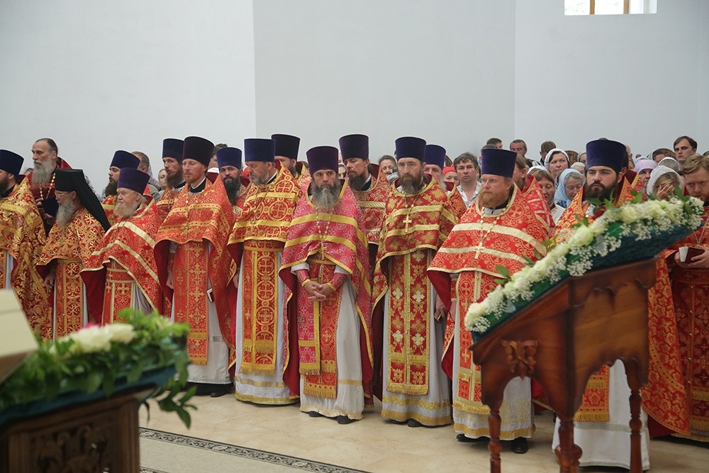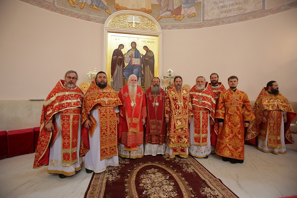 Его Высокопреосвященству сослужили митрополит Рязанский и Михайловский Марк, архиепископ Бакинский и Азербайджанский Александр, епископ Сиэтлийский Феодосий, епископ Канберрский Георгий, епископ Исилькульский и Русско-Полянский Феодосий, епископ Мариинский и Юргинский Иннокентий, епископ Магнитогорский и Верхнеуральский Иннокентий, епископ Ахтубинский и Енотаевский Антоний, епископ Каменский и Алапаевский Мефодий, епископ Щигровский и Мантуровский Паисий, епископ Нижнетагильский и Невьянский Евгений, епископ Серовский и Краснотурьинский Алексий, секретарь епархиального управления Екатеринбургской епархии иеромонах Кирилл (Корытко), настоятель обители игумен Моисей (Пилатс), а также духовенство Екатеринбургской митрополии.