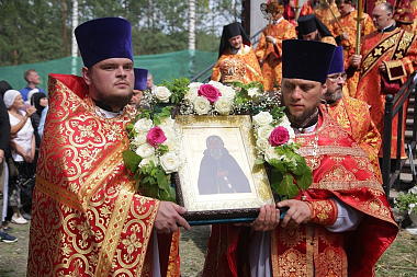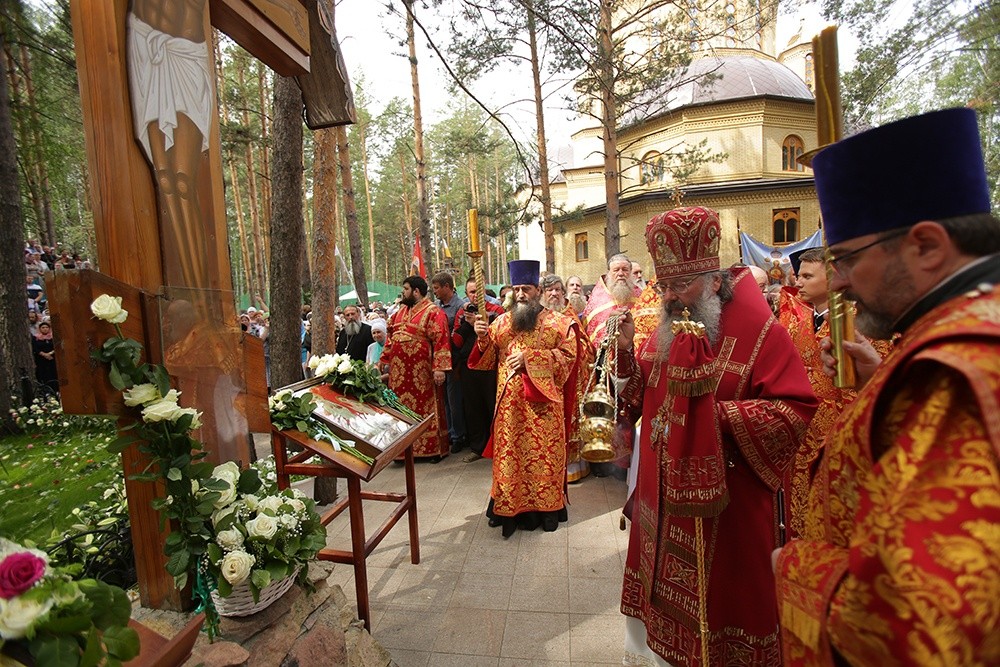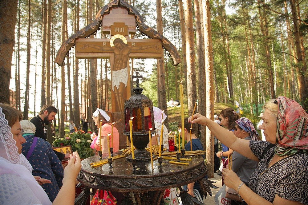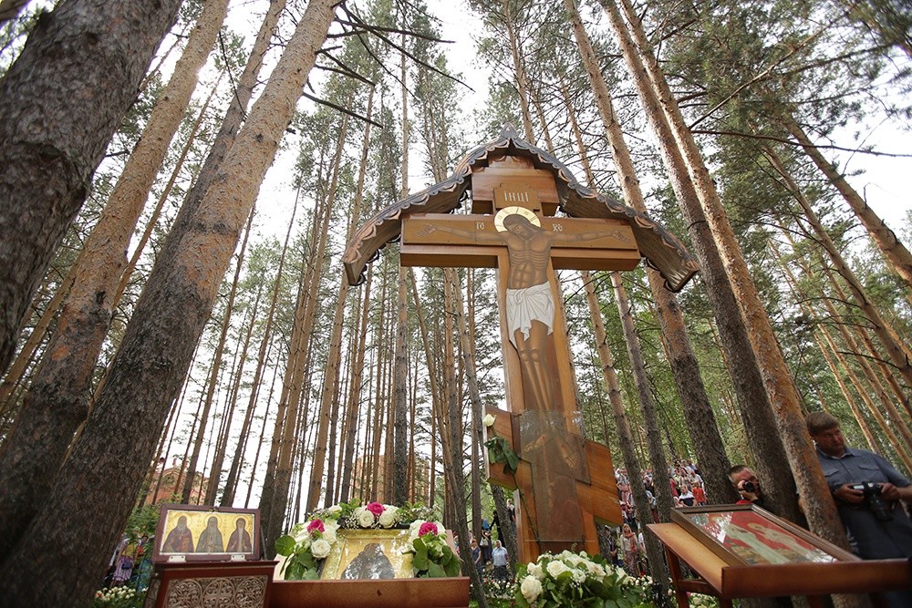 По завершении литургии состоялся крестный ход к шахте, куда в 1918 году, в ночь с 17 на 18 июля, живыми были сброшены алапаевские мученики: Великая княгиня Елисавета Феодоровна, ее келейница инокиня Варвара (Яковлева), Великий князь Сергей Михайлович, князья Дома Романовых Иоанн, Константин, Игорь Константиновичи, князь Владимир Палей и секретарь Федор Ремез.