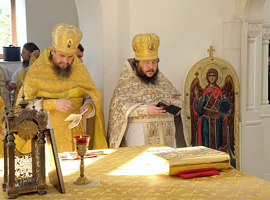 Возле храма византийской архитектуры прибывавших гостей и богомольцев встречал сам именинник, одаривая каждого благословением и приветственным словом.